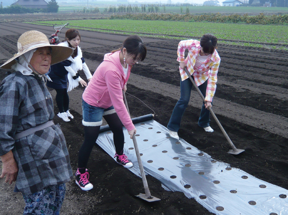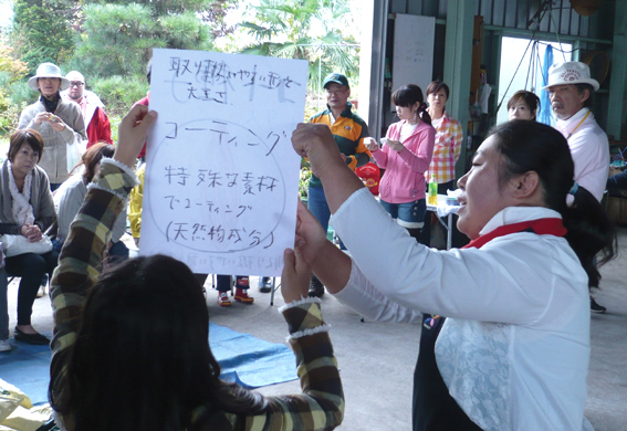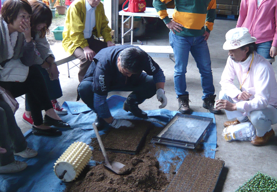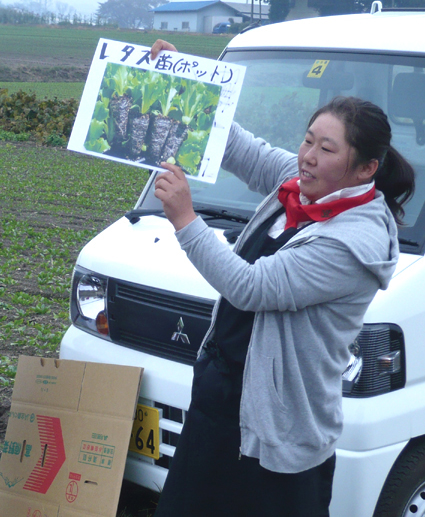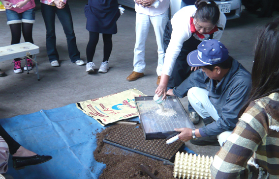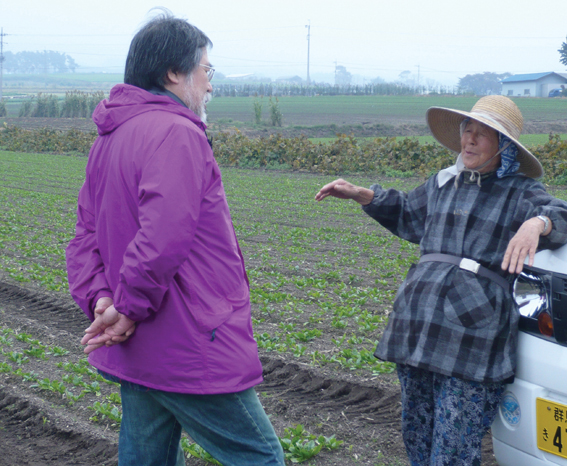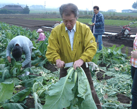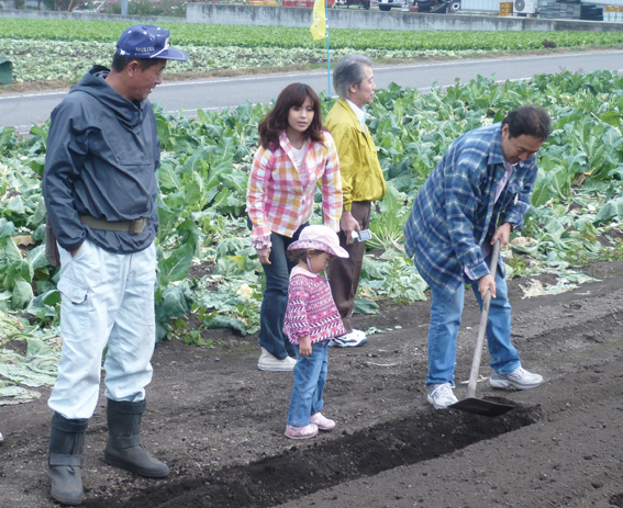 この日、現地農家の角田栄さん、小田桐好江さんの協力で、農業や野菜の栽培に関する実演・解説に努めていただきました。