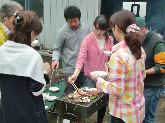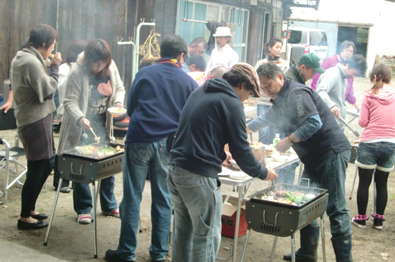 農業体験をひと通り終えた後は、第2農園にある母屋をお借りして、参加者全員でバーベキューを楽しみました。また、ご協力いただいた農家の角田さんもご同席して昼食を楽しまれました。